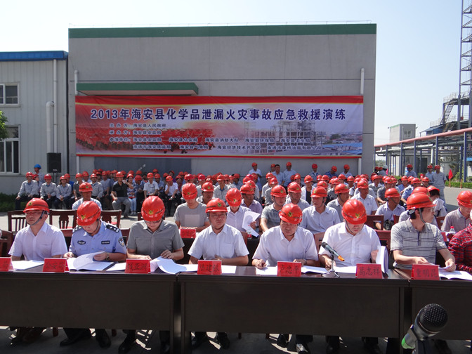 2013年8月2日上午,2013年海安縣化學(xué)品泄漏火災(zāi)事故應(yīng)急救援演練活動(dòng)在我司舉行。